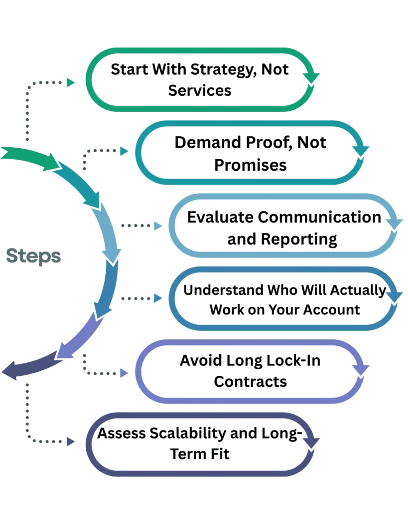 If an agency opens the conversation by pushing SEO, ads, or social media packages, that’s a red flag.