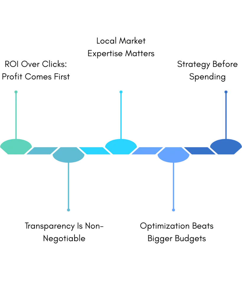 If an agency talks only about impressions and clicks, that’s a red flag. You don’t need traffic—you need profitable traffic.